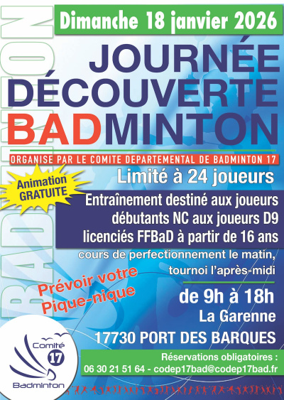 Les journées découvertes sont à destination des joueuses et joueurs qui souhaitent faire évoluer leur jeu et découvrir plus de facettes du badminton.
