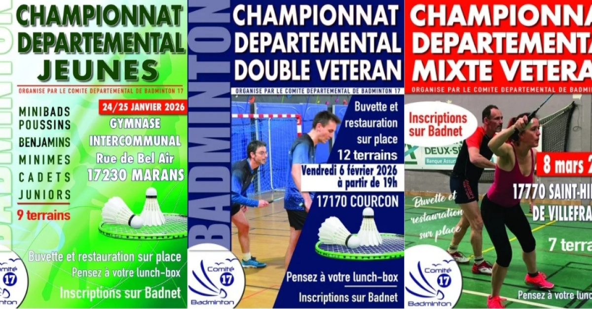 La saison bat son plein et les Championnats Départementaux de Charente-Maritime arrivent à grands pas ! Que vous soyez jeune compétiteur plein d’énergie ou vétéran passionné de doubles et de mixtes, c’est le moment de vous lancer et de représenter votre club 🔥